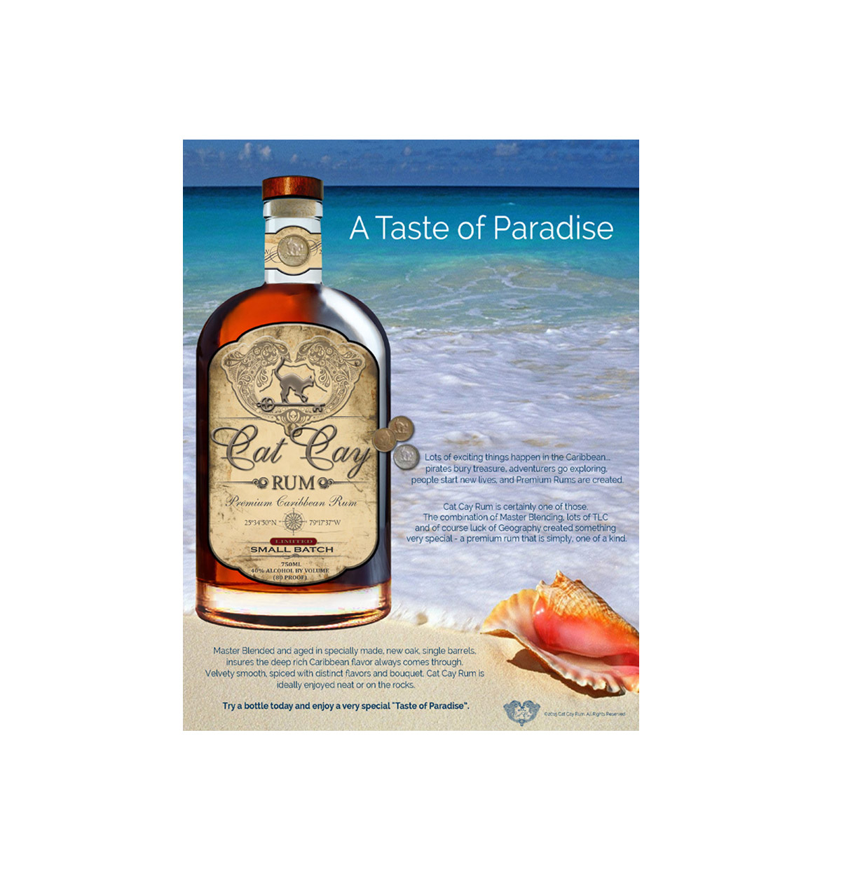 Master Blended and aged in new oak, single barrels, insures the deep rich Caribbean flavor always comes through. Velvety smooth with distinct flavors and bouquet, Cat Cay Rum is ideally enjoyed neat or on the rocks.